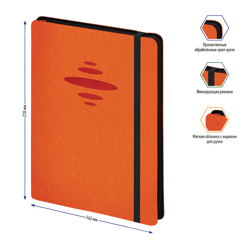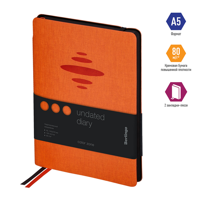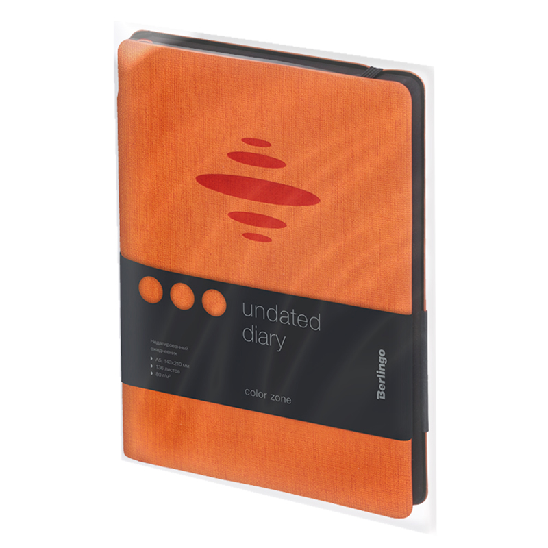 Ежедневник недатированный, А5, 136л., кожзам, Berlingo "Color Zone", черн. срез, с резинкой, оранжевый Купить за 1 368 ₽ | Артикул: UD0_86505