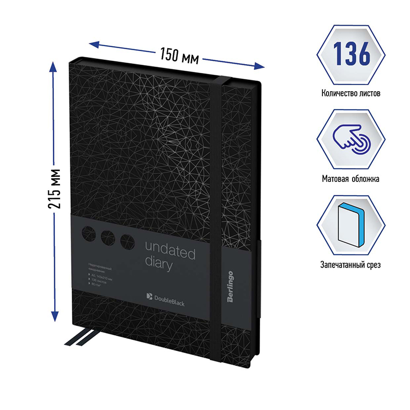Ежедневник недатированный, А5, 136л., кожзам, Berlingo "DoubleBlack", черный срез, черный, с рисунком Купить за 1 611 ₽ | Артикул: UD0_94503