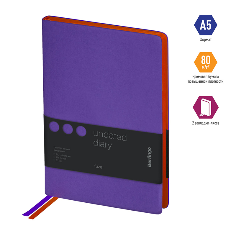 Ежедневник недатированный, А5, 136л., кожзам, Berlingo "Fuze", цветной срез, фиолетовый Купить за 1 501 ₽ | Артикул: UD0_87505