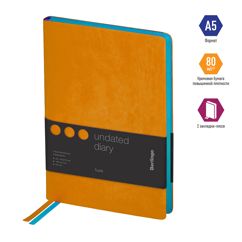 Ежедневник недатированный, А5, 136л., кожзам, Berlingo "Fuze", цветной срез, оранжевый Купить за 1 501 ₽ | Артикул: UD0_87503