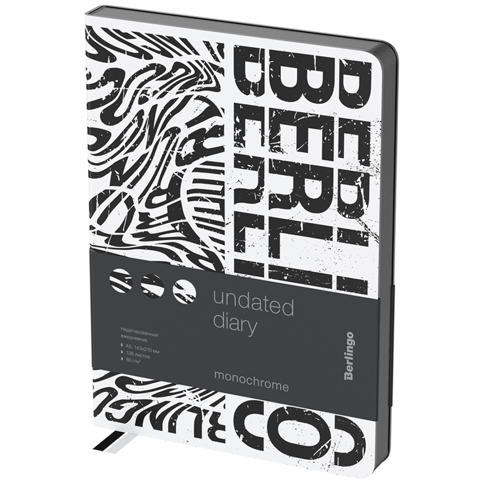 Ежедневник недатированный, А5, 136л., кожзам, Berlingo "Monochrome", черный срез, с рисунком Купить за 1 012 ₽ | Артикул: UD2_02S01