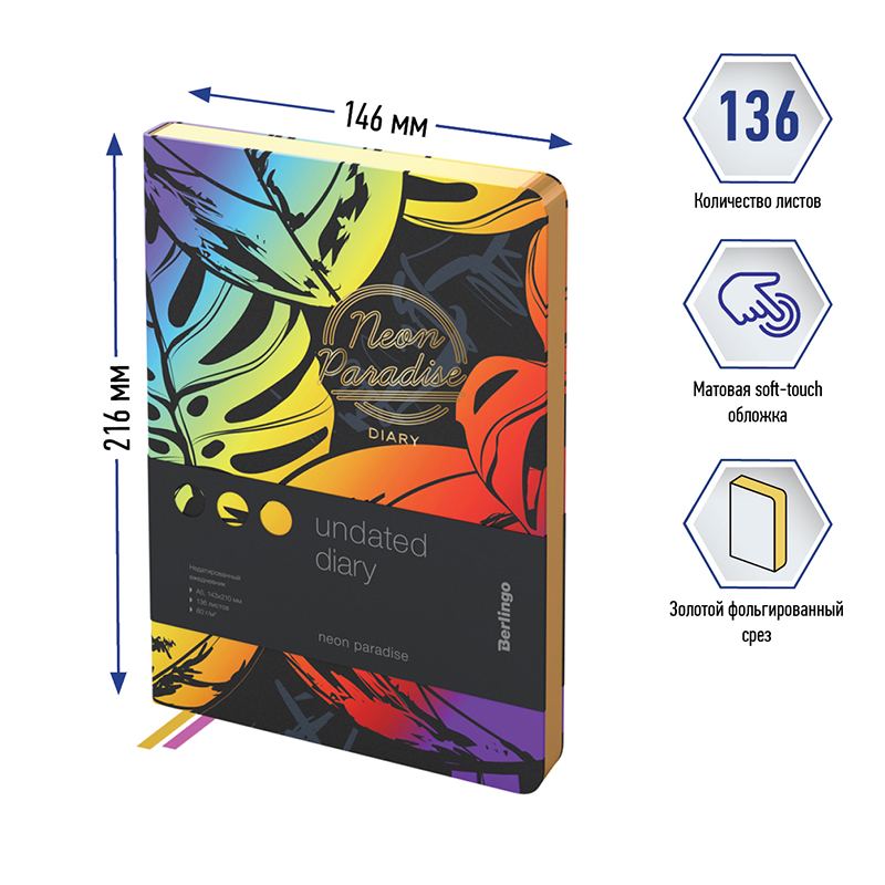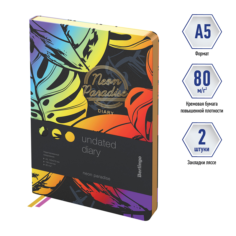 Ежедневник недатированный, А5, 136л., кожзам, Berlingo "Neon Paradise", золотой срез, с рисунком Купить за 1 790 ₽ | Артикул: UD2_98501