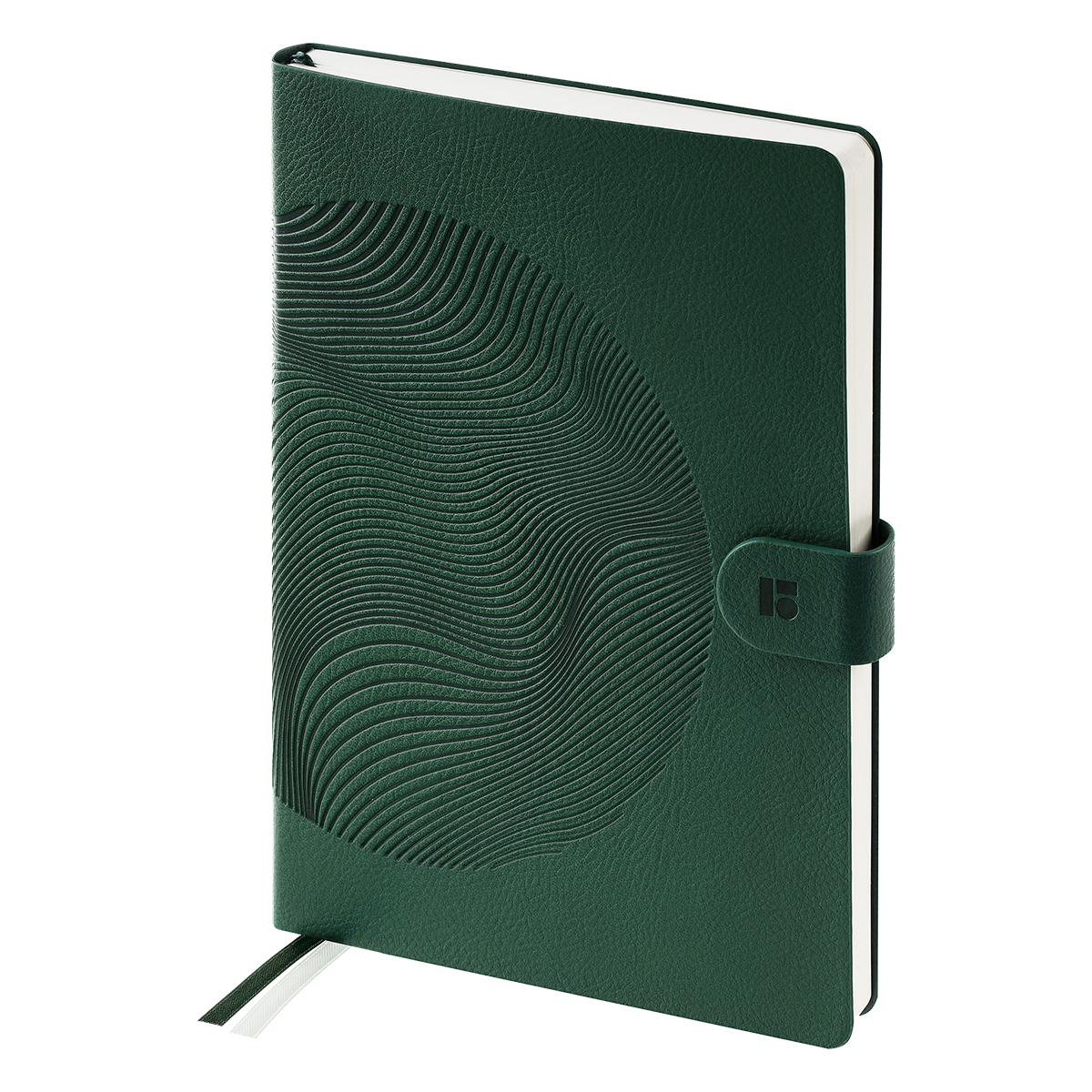 Классический недатированный ежедневник Berlingo "Symbol" формата А5 выполнен с интегральной обложкой из фактурной зелёной экокожи с элегантным глубоким тиснением. Магнитная застёжка надёжно фиксирует ежедневник в закрытом состоянии и может использоваться для крепления ручки. Внутренний блок состоит из 136 листов кремовой бумаги повышенной плотности 80 г/м² с пантонной печатью в две краски. Размер ежедневника — 155*213 мм. Обновлённый блок включает разделы для организации рабочего времени и систематизации личных планов, а также мотивирующие цитаты на каждый день. Раздел с постановкой годовых целей с разбивкой на этапы помогает сохранять фокус на самом важном. От.дельный блок отрывных листов предназначен для заметок, а дополнительный внутренний конверт — для хранения важных записей. Две закладки-ляссе обеспечивают удобство использования. В комплект входят красочные наклейки, которые станут приятным подарком. Ежедневник упакован в индивидуальный брендированный пакет с клеевым клапаном.