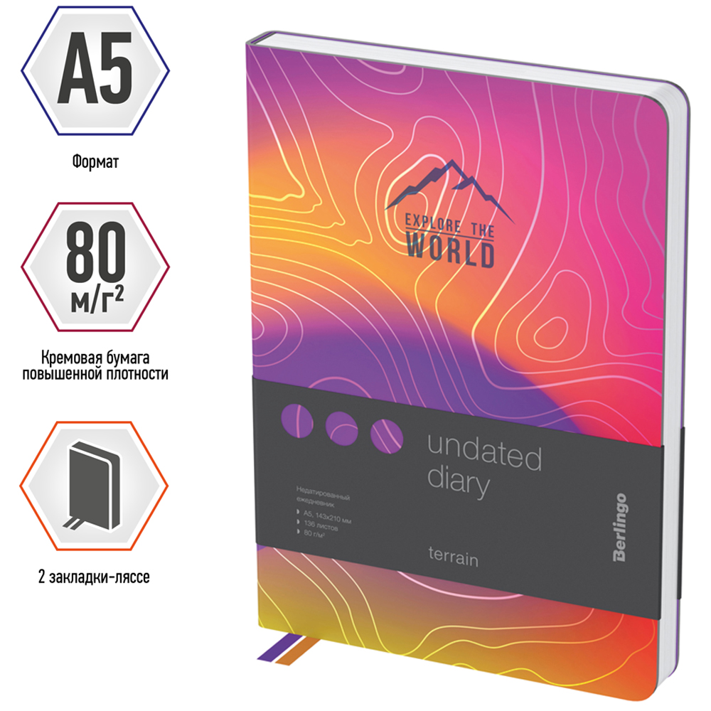 Ежедневник недатированный, А5, 136л., кожзам, Berlingo "Terrain", серебряный срез, с рисунком Купить за 737 ₽ | Артикул: UD2_02S09