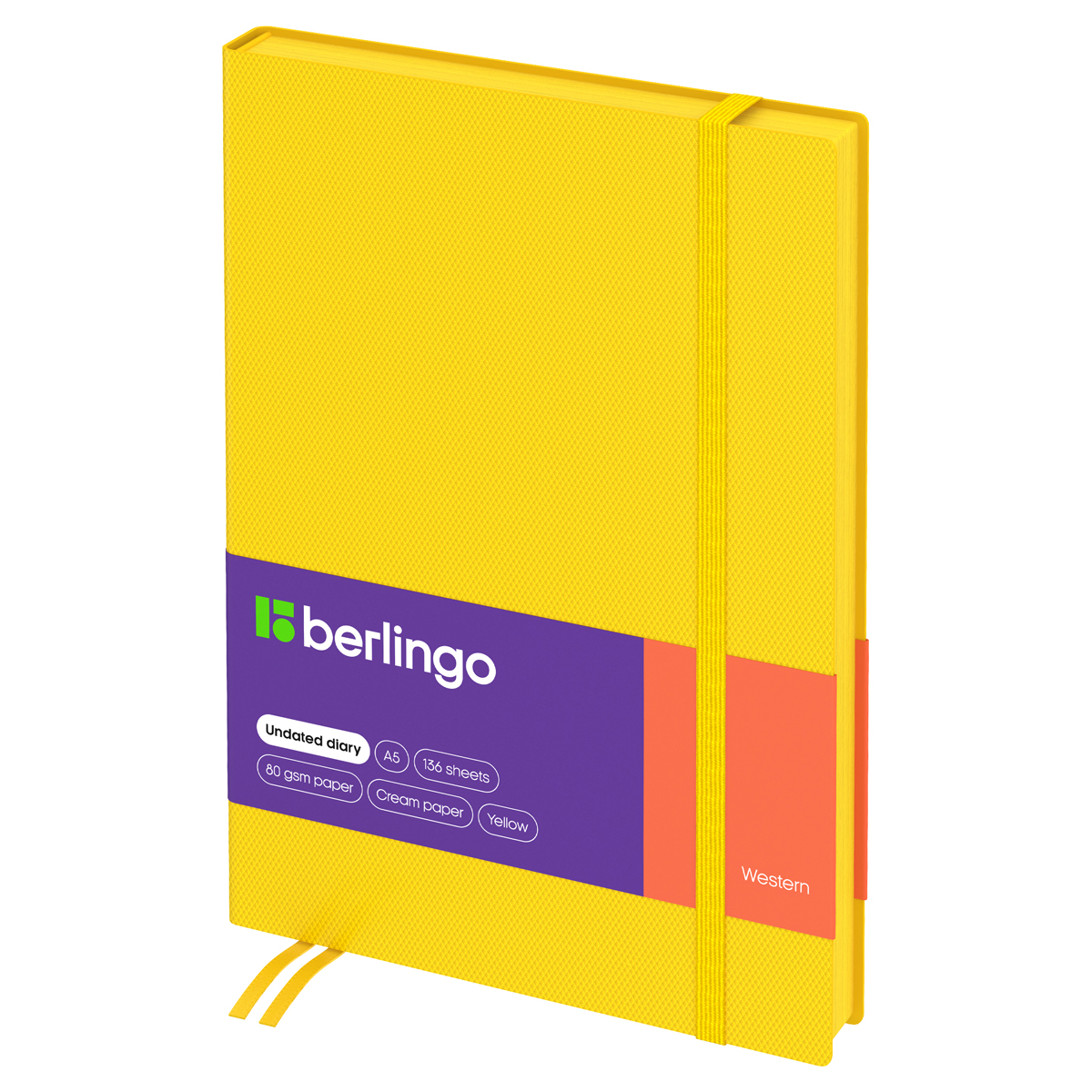Ежедневник недатированный, А5, 136л., кожзам, Berlingo "Western", желтый, с резинкой Купить за 1 304 ₽ | Артикул: UD3_85506