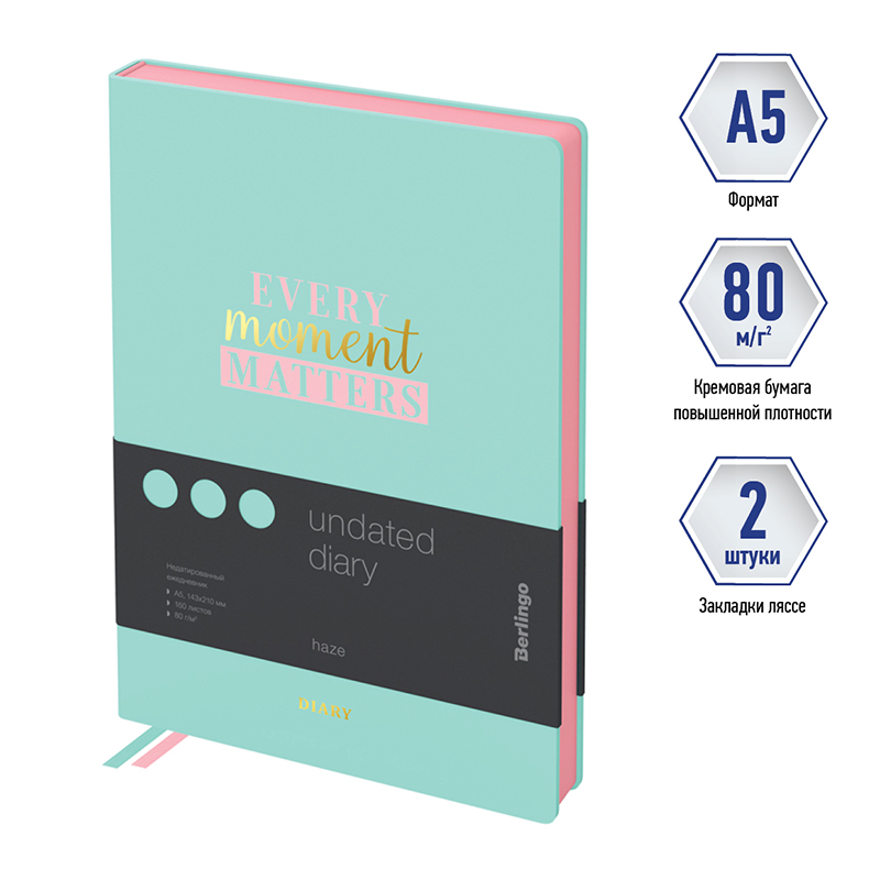 Ежедневник недатированный, А5, 160л., кожзам, Berlingo "Haze", розовый срез, мятный, с рисунком Купить за 1 728 ₽ | Артикул: UD2_95502