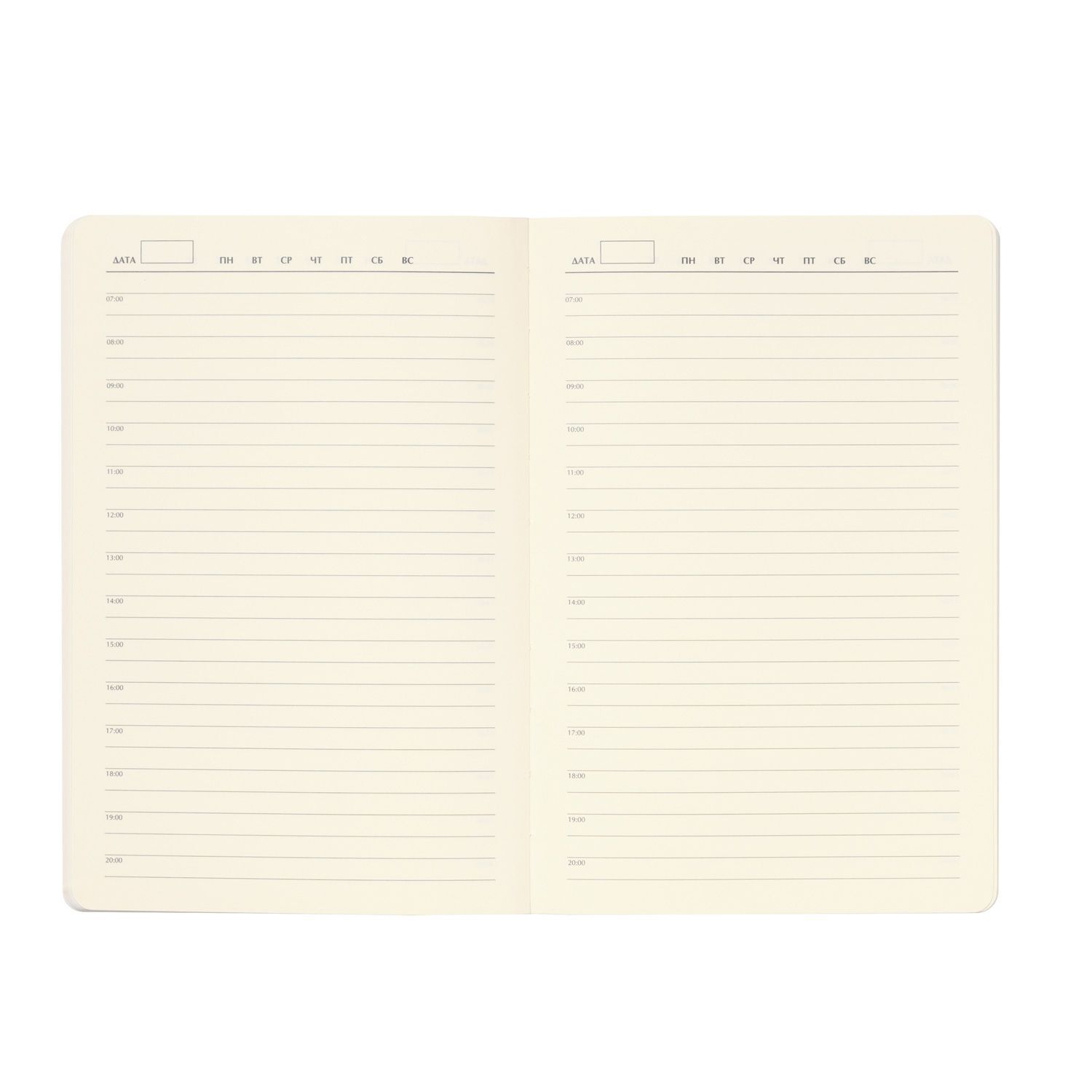 Внутри — страницы теплого светло-кремового оттенка из гладкого шелковистого офсета со скругленными уголками, которые обеспечивают комфортное письмо. Элегантное атласное ляссе с легким глянцем служит изысканным акцентом.