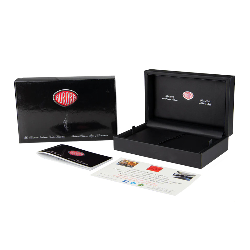 Линия Optima от Aurora вызывает элегантность исторических дизайнов 1930-х годов. Подлинная легенда своего времени, она сохраняет свой уникальный и очаровательный стиль, превращая эту ручку-роллер в культовый объект для тех, кто знает, чего хочет. Версия Auroloide Optima была изготовлена из материалов того времени и выделяется своими хромированными деталями ручной работы и тщательным вниманием к мелким деталям. Этот материал используется с момента его первого появления в 1923 году. Колпачок и корпус изготовлены из ярко-красного мраморного ауролида — очень древнего, но престижного и изысканного материала.