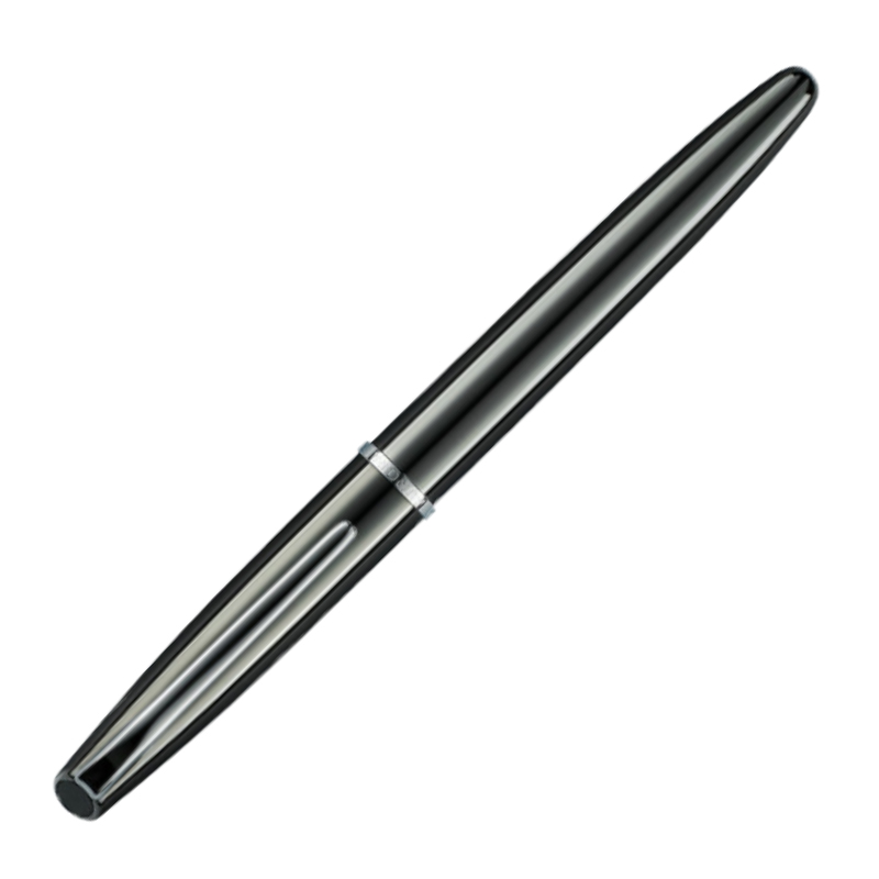 Ручка-роллер Aurora Style Shiny Gun-metal Barrel and Cap Chrome Plated Trim сделана из ювелирной латуни цветом оружейной стали и акриловой смолы. Отделка ручки выполнена хромом. Поверхность корпуса гладкая, отполированная до состояния зеркальной поверхности. Ручка упакована в фирменную подарочную коробку. В комплекте имеется стержень-роллер.